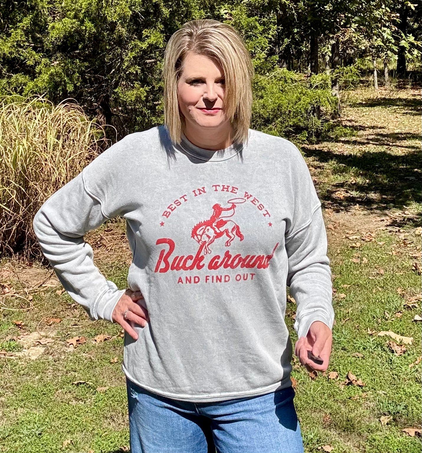 Buck Around and Find out mineral sweatshirt in Heather Grey - Size: Small to XL