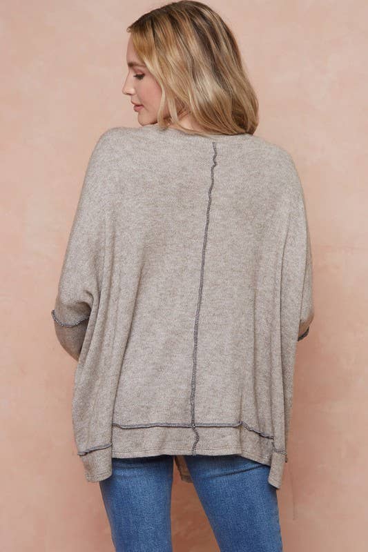 Thermal cashmere solid color block tunic with leopard French terry contrast and threading details. This sweater is super lightweight and perfect for Spring, Fall, and Winter. We love it and think you will too!
