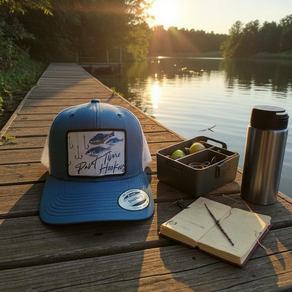 This blue and white "Part Time Hooker" trucker hat is sure to turn heads. One Size Fits All.