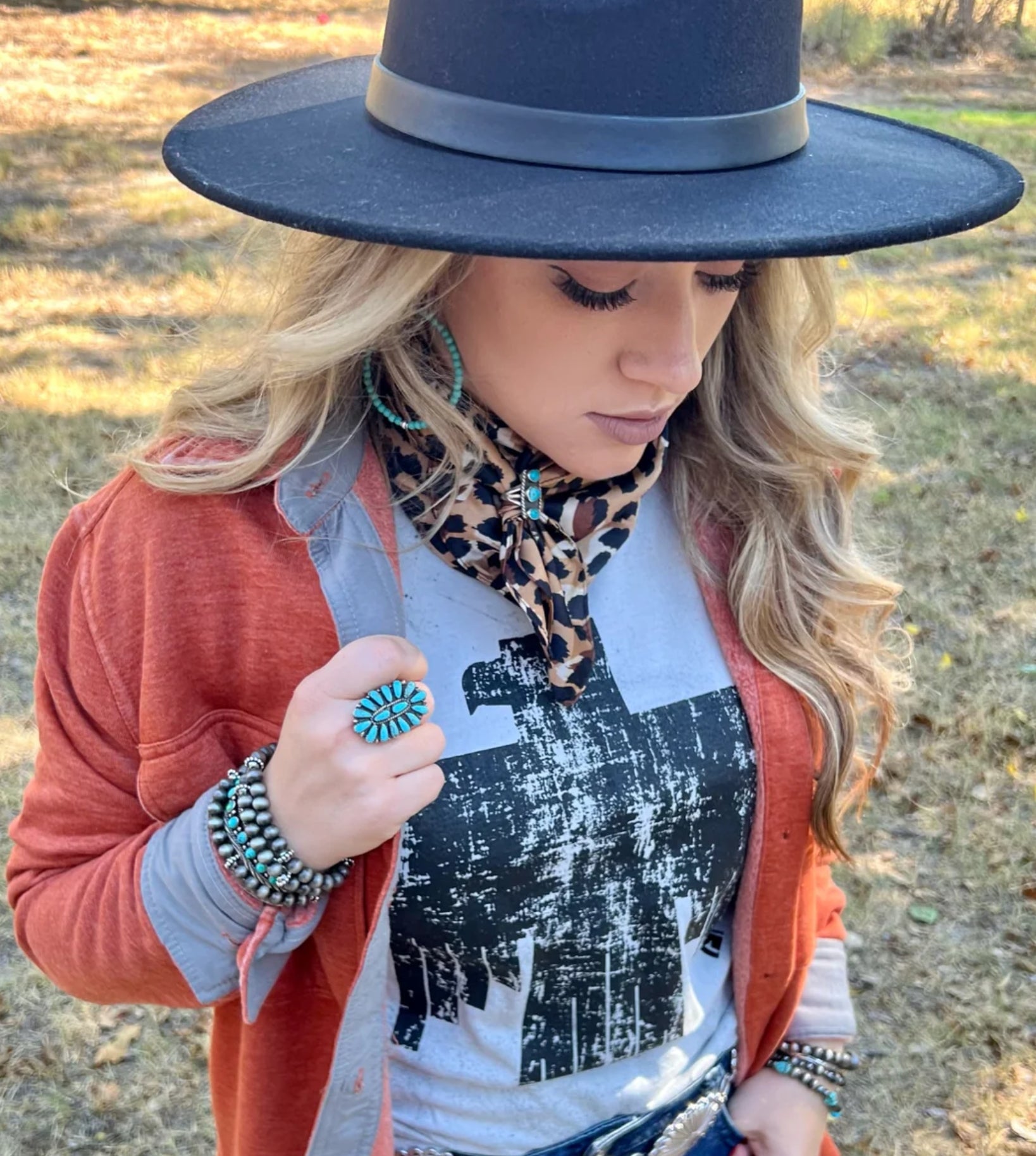 We love this vintage, rocker, vibe! This Texas True Thread tee is on a Comfort Color Smoke t-shirt. However, we think you will be the smoke show in this one!
