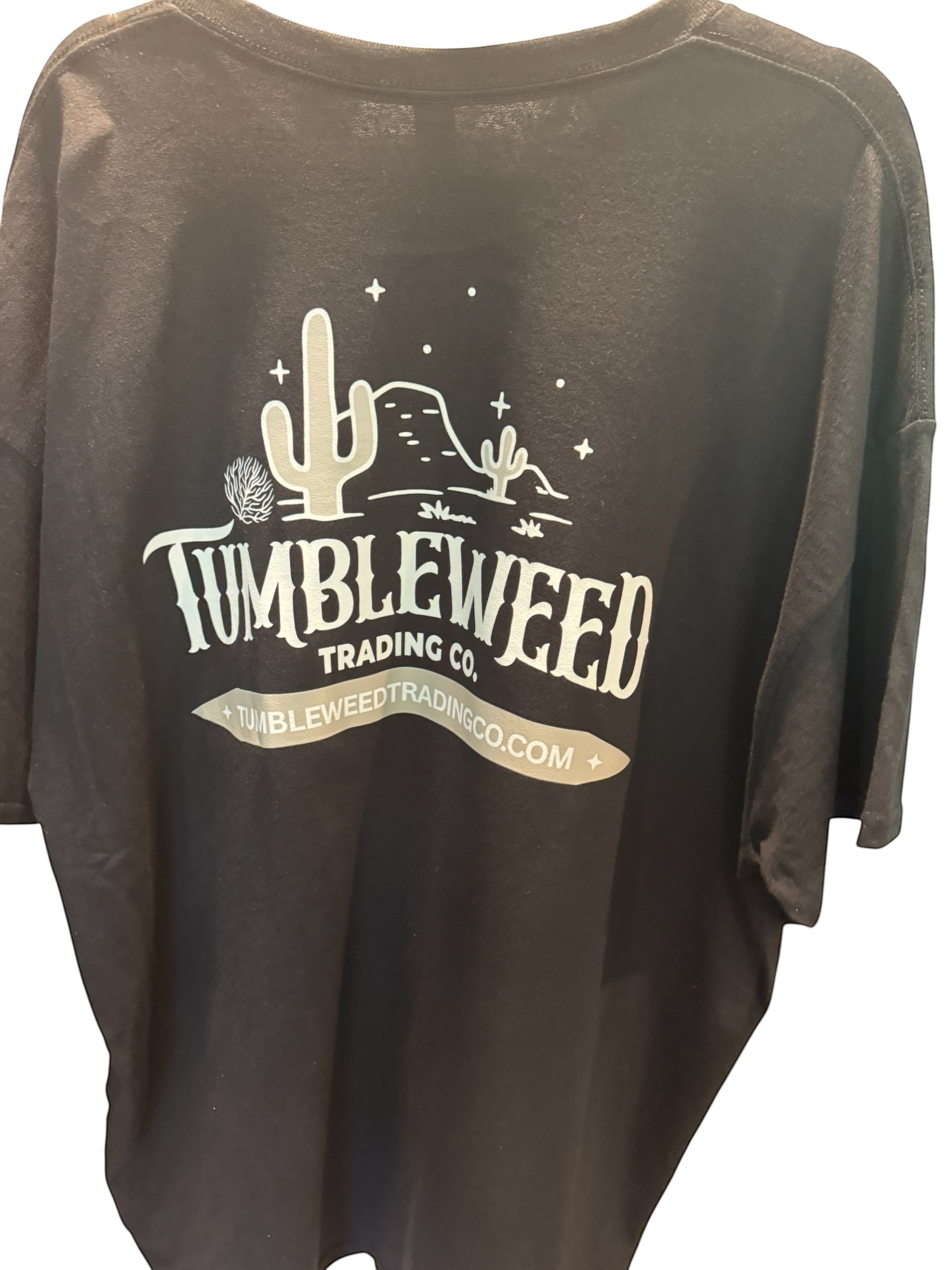 This super-soft unisex shirt features a small front chest graphic of a tumbleweed and our laid-back motto, “Just Roll with It,” perfectly placed where a pocket would be. On the back, you'll find our bold Tumbleweed Trading Co. logo, making it a statement piece from every angle. Whether you're out on the road or relaxing at home, this tee is all about comfort and effortless cool.